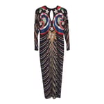 Spectacular handmade silk and sequin gown. Embody the melodrama and vivid aesthetics of the circus with this theatrical sequin-adorned vintage gown. Emblazoned with swirling rainbows and stars, it is finished with flying trapeze details on the shoulders.