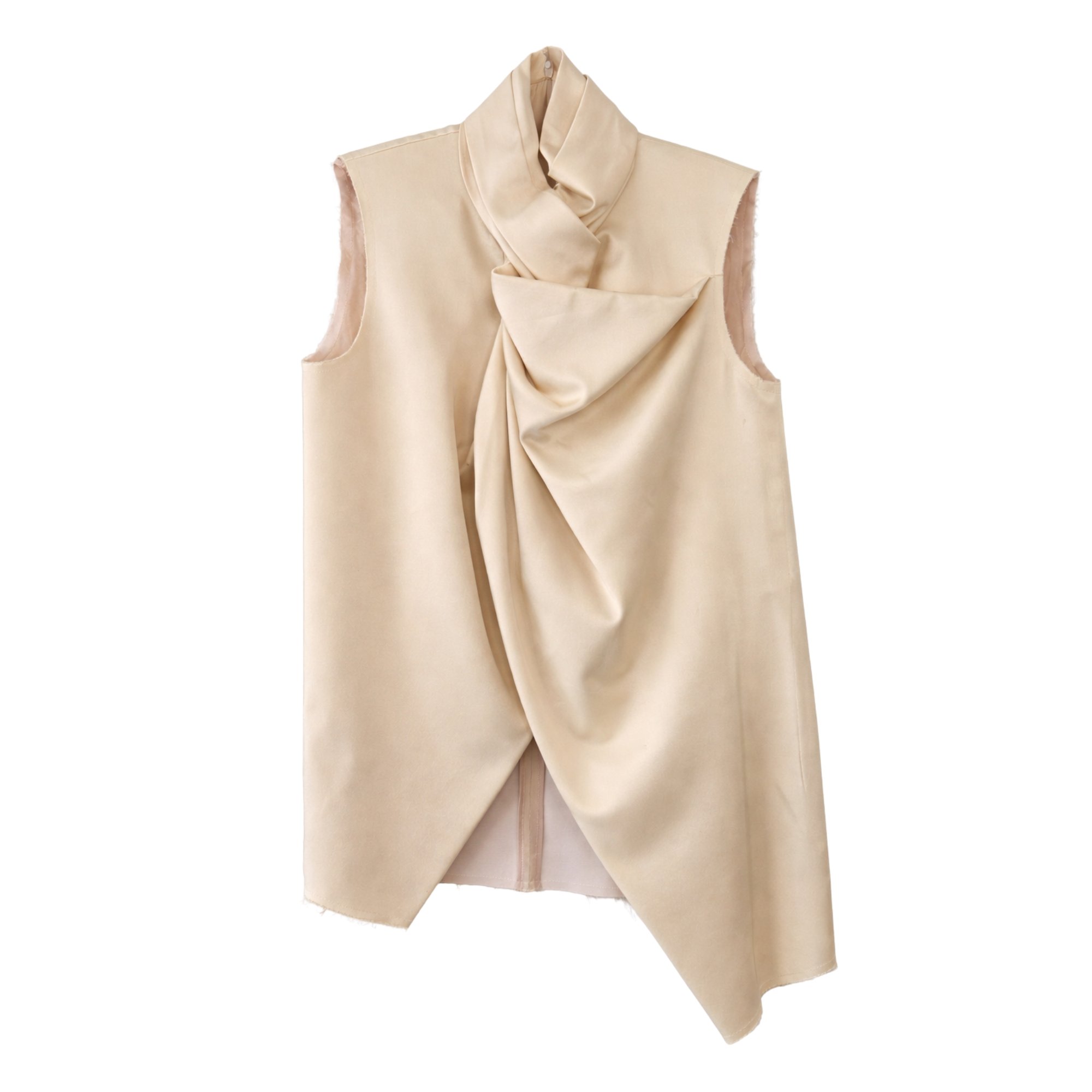 • Céline by Phoebe Philo Spring 2013 • Sleeveless top • Cream silk • Twist front • Asymmetric tailoring • High-neck • Zip at rear • Made in France