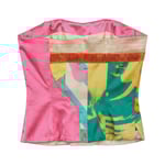 • Christian Lacroix Fall 2001 • Multi-coloured silks • Embellished • Angular neckline • Boned • Strapless • Logo hanging straps • Made in France