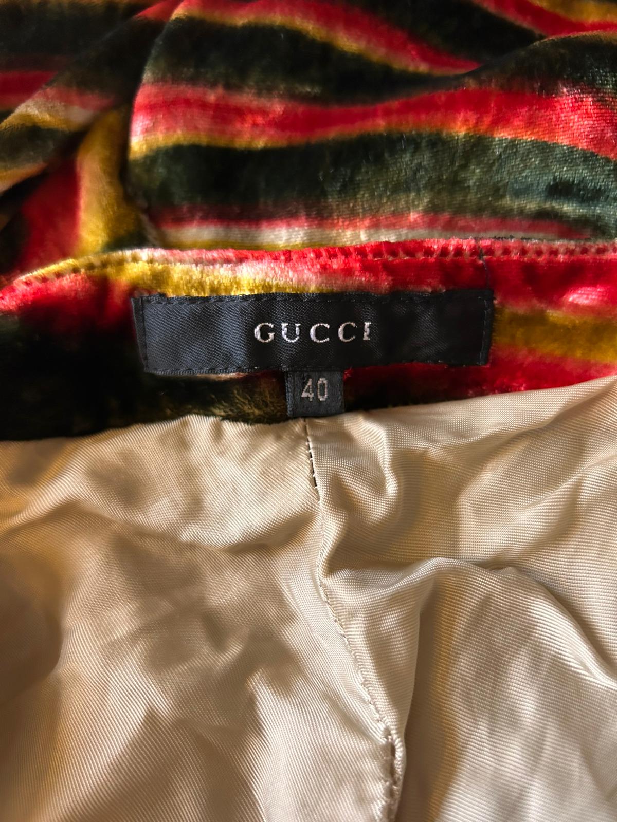 • Gucci by Tom Ford Fall 1999 • Silk-mix velvet • Psychedellic pattern • Flared cut • Lined in stone satin • Zip fastening • Made in Italy