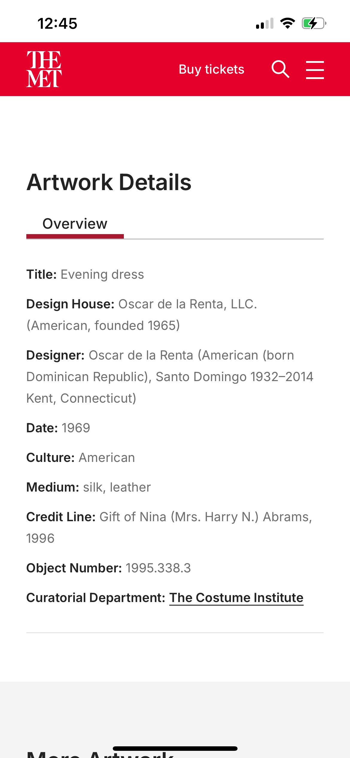 Oscar de la Renta 1969 Couture Dress