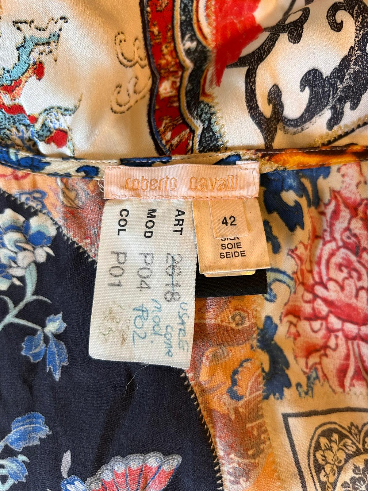 • Roberto Cavalli • Wrap-around shirt • Silk • Quilted collar and cuffs • Black silk belt • Unlined • Made in Italy