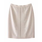 This particular example stands out for its unusual cable-knit detailing at the collar and pockets, a softer twist on Mugler’s futuristic vision that hints at traditional artisan craftsmanship. Cable-knit was a recurring motif in Mugler collections throughout the 1990s, used to sculpt slinky semi-sheer maxi-dresses and body-hugging tops. The jacket is crafted from cream worsted wool and closes with two fabric-covered buttons at the front. The lapels, cuffs and patch pockets are trimmed in cable-knit wool. The jacket is cut to cinch the waist in the way that only Mugler can, and the back forms a peplum that exaggerates the shape of the hips. The skirt is a high-waist mini-skirt with a panel of cream cable-knit down the front. It fastens at the back with a tonal zip and snap closure on Mugler's signature angled tab. Both pieces are lined in tonal satin throughout.