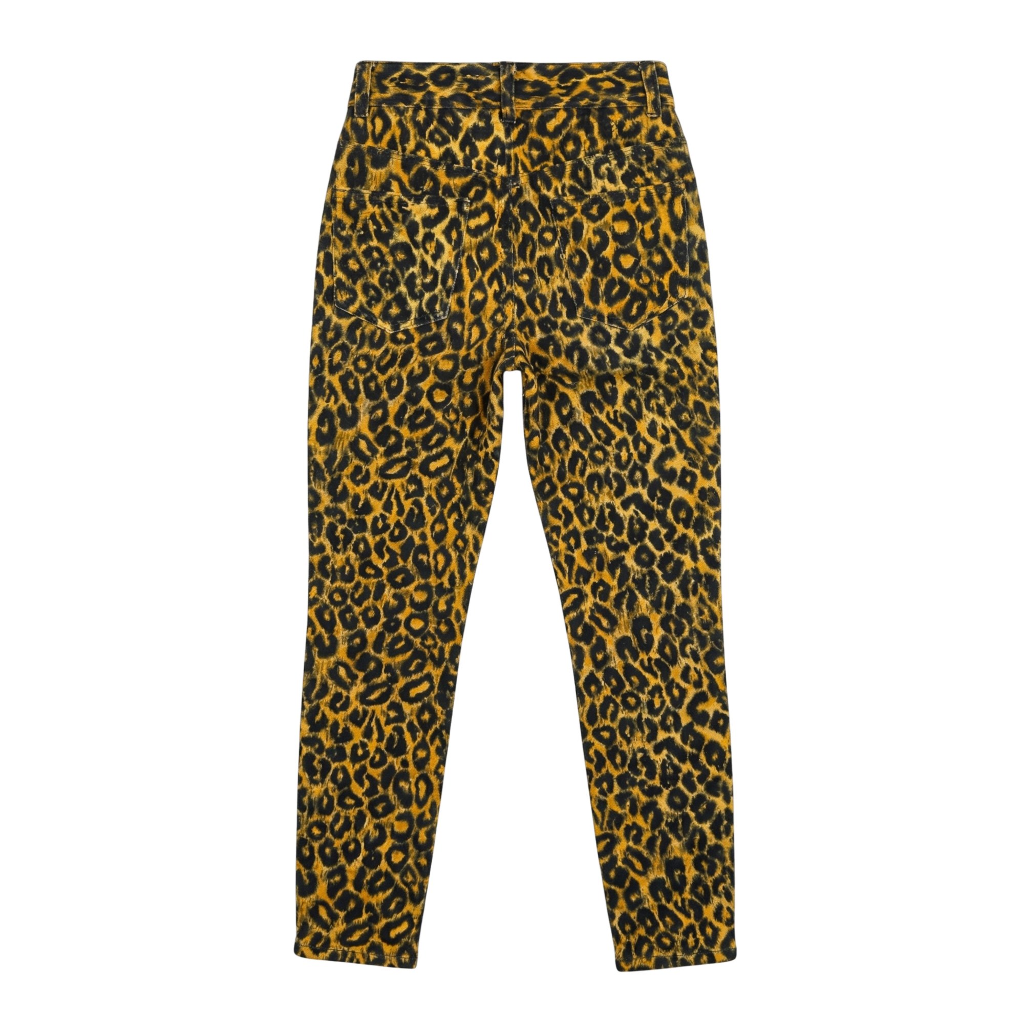 • Spring 1992 Versus Versace • Leopard cotton • High-waist • Medusa embossed gold button • Side slip pockets • Rear patch pockets • Zips at ankles • Made in Italy